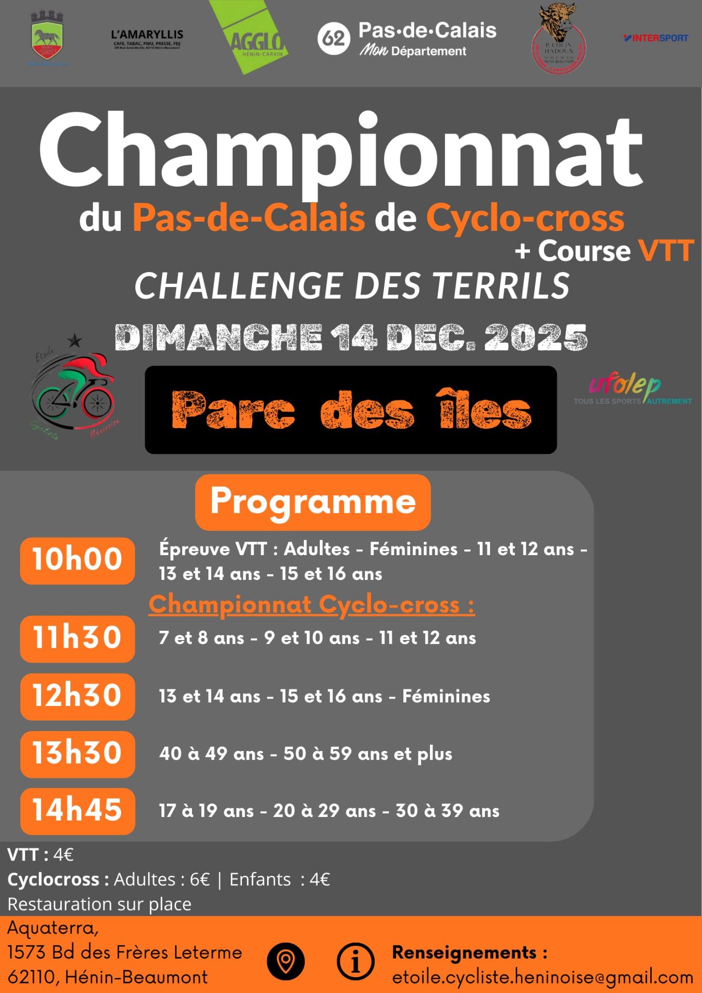 Rendez-vous le dimanche 14 décembre pour le challenge des Terrils au Parc des îles dès 10h organisé par l’Etoile Cycliste Héninoise.