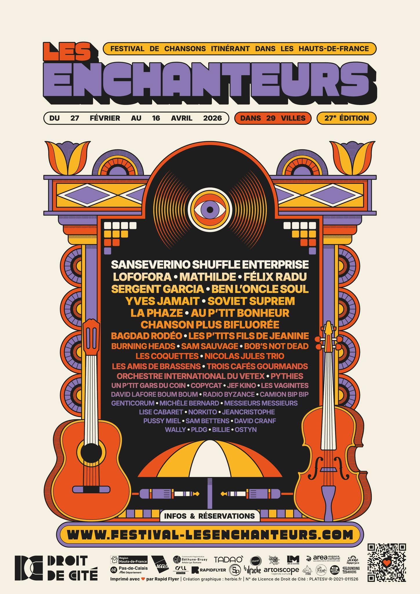 - Réservation en ligne sur www.billetweb.fr/pro/lesenchanteurs2026 / Par téléphone : 03 21 49 21 21