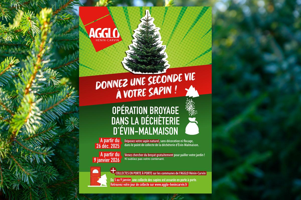 Cette année, l’Agglo Hénin-Carvin met en place une opération spéciale de broyage des sapins de Noël à la déchèterie d’Évin-Malmaison, afin de valoriser vos arbres naturels.