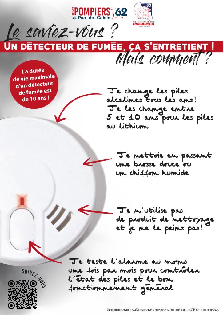 - Vérifiez régulièrement le bon fonctionnement de votre détecteur de fumée ;