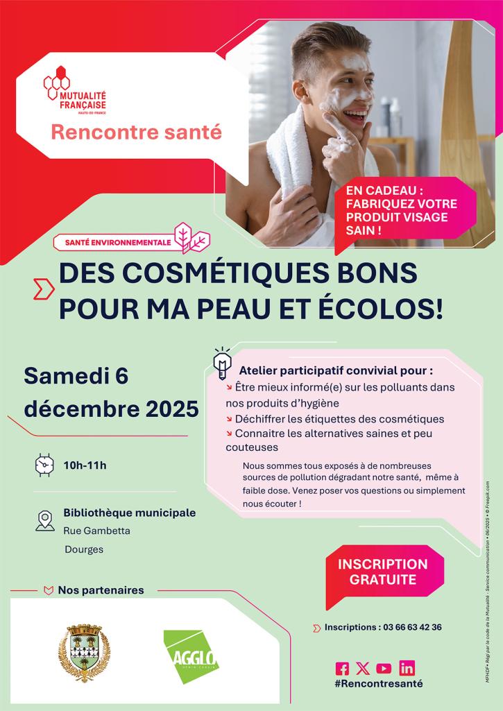 L’Agglo Hénin-Carvin en partenariat avec la Mutualité Française et la ville de Dourges organise un atelier participatif sur le thème : « Des cosmétiques bons pour ma peau et écolos ! ».