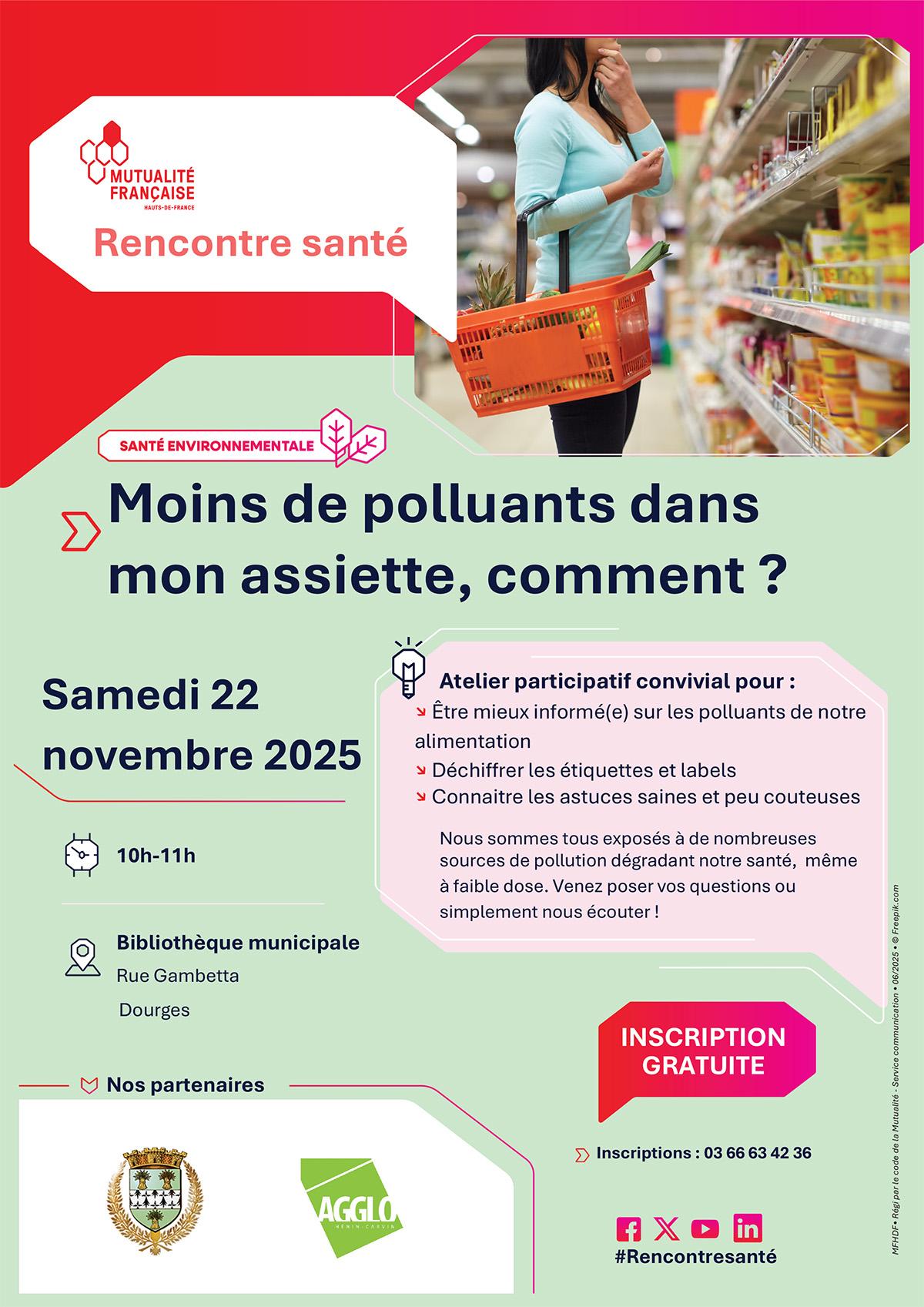 L’Agglo Hénin-Carvin en partenariat avec la Mutualité Française et la ville de Dourges organise un atelier participatif sur le thème : « Moins de polluants dans mon assiette, comment ? ».