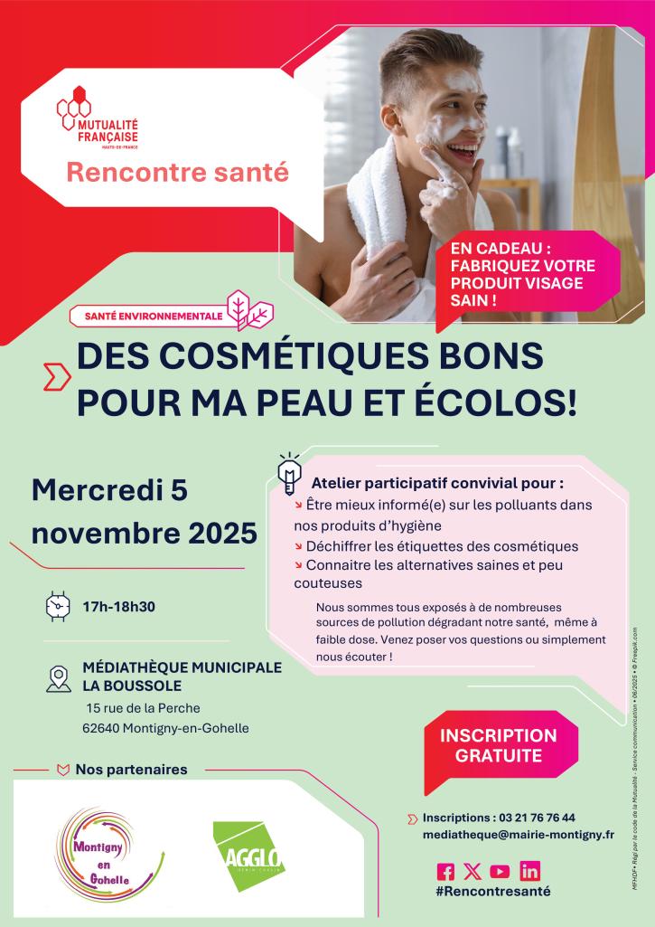 L’Agglo Hénin-Carvin en partenariat avec la Mutualité Française et la ville de Montigny-en-Gohelle organise un atelier participatif sur le thème : « Des cosmétiques bons pour ma peau et écolos ! ».